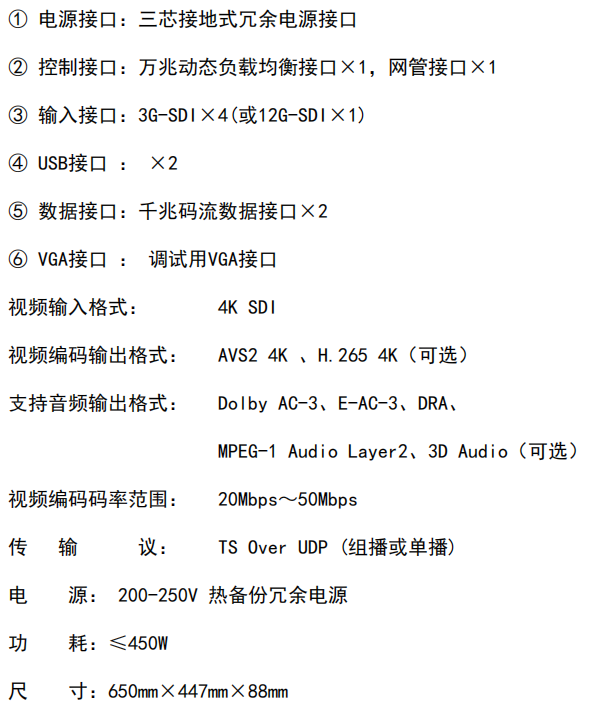 产品简介 KU-E2000/UHD超高清编码器是北京东华广信/广州柯维新自主研究推出的一款支持我国自主标 准的业内首款AVS2 4K超高清实时编码器产品。作为广播级4K超高清数字编码器,本产品完全支持 和满足AVS2标准的规范,同时可选兼容HEVC(H.265)标准。 KU-E2000/UHD超高清编码器采用高性能编码平台,支持4X3G-SDI超高清音视频接口,支持 12G-SDI扩展接口(选购项)。在模式判断、运动估值、码率控制算法、Dual-Pass编码,多GOP分 布式并行编码等方面融入了多项自主的核心技术,实现了超高清高动态实时编码技术,在AVS2超 高清实时编码质量、稳定性等方面处于领先地位。 KU-E2000/UHD超高清编码器集成了动态元数据HDR和3D Audio等两项国际先进的编码技术,可 为用户提供更多选择。是国内外首款将AVS2 4K超高清编码技术+动态元数据HDR编码技术+3D Audio编码技术完美结合的产品。其动态元数据的HDR预处理也可以在运算能力足够的编码器中内 置,有效降低前置处理增加的延时,减少系统投入。 技术特性 KU-E2000/UHD超高清编码器音视频特性经权威机构测试验证,完全符合规范。该编码器采用 了我司自主研发的Dual-Pass编码技术,对高并行处理度的4K超高清编码意义尤为巨大,成为中央 广播电视台首套4K超高清卫视频道选用的产品,助力我国首套AVS2 4K超高清卫视频道开播。 产品配合本公司面向4K超高清接收解码的KU-D2000/UHD 接收解码器(支持HDMI、/4X3G-SDI、 SDI/12G-SDI等输出接口),面向超高清基带信号传输交换应用推出的KU-POD 4K/8K超高清IP基带 传输转换器,超高清码流分析监测系统,满足了用户在4K超高清应用方面的多种需求。